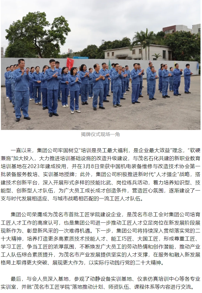 首家“茂名市工匠學(xué)院”在茂化建正式揭牌成立!