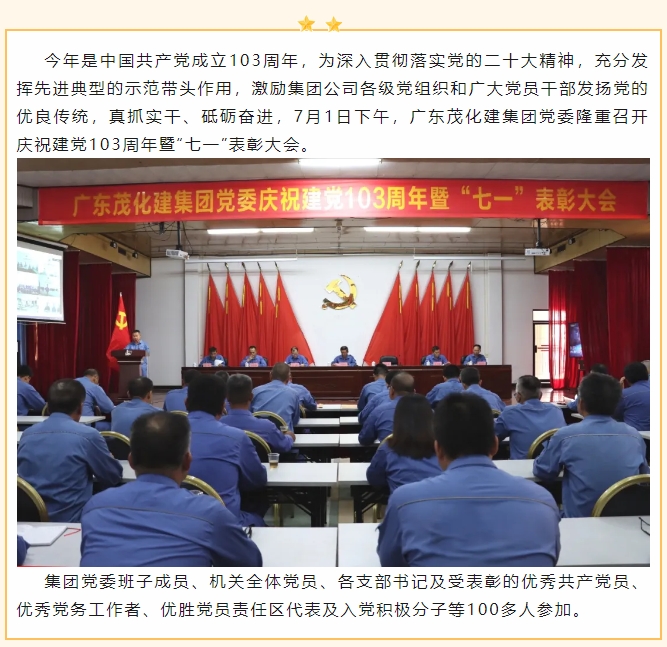廣東茂化建集團(tuán)黨委召開(kāi)慶祝中國(guó)共產(chǎn)黨成立103周年暨“七一”表彰大會(huì)