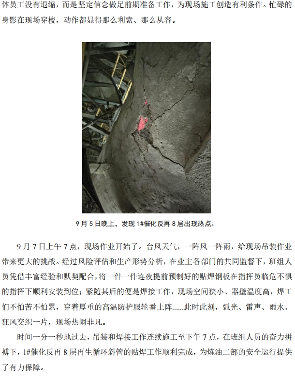臺風前夕!北海公司對 1#催化再生循環(huán)斜管貼焊搶險