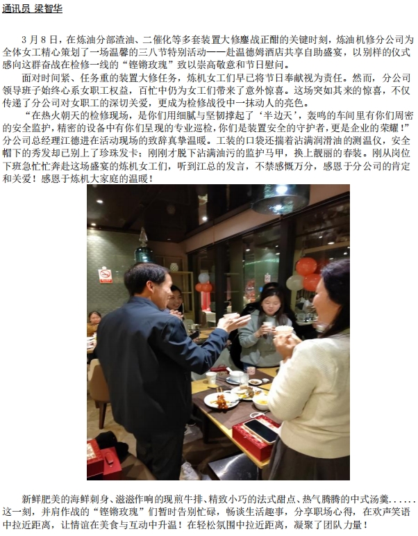煉油機修分公司舉辦溫情三八節(jié)活動