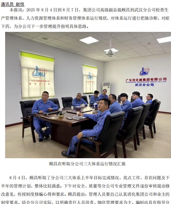 顧昌到武漢分公司檢查三大體系運行情況